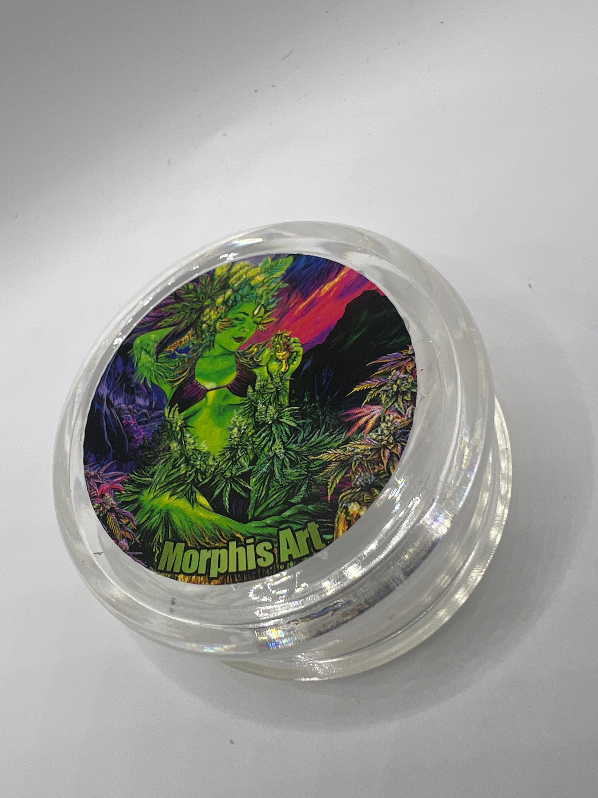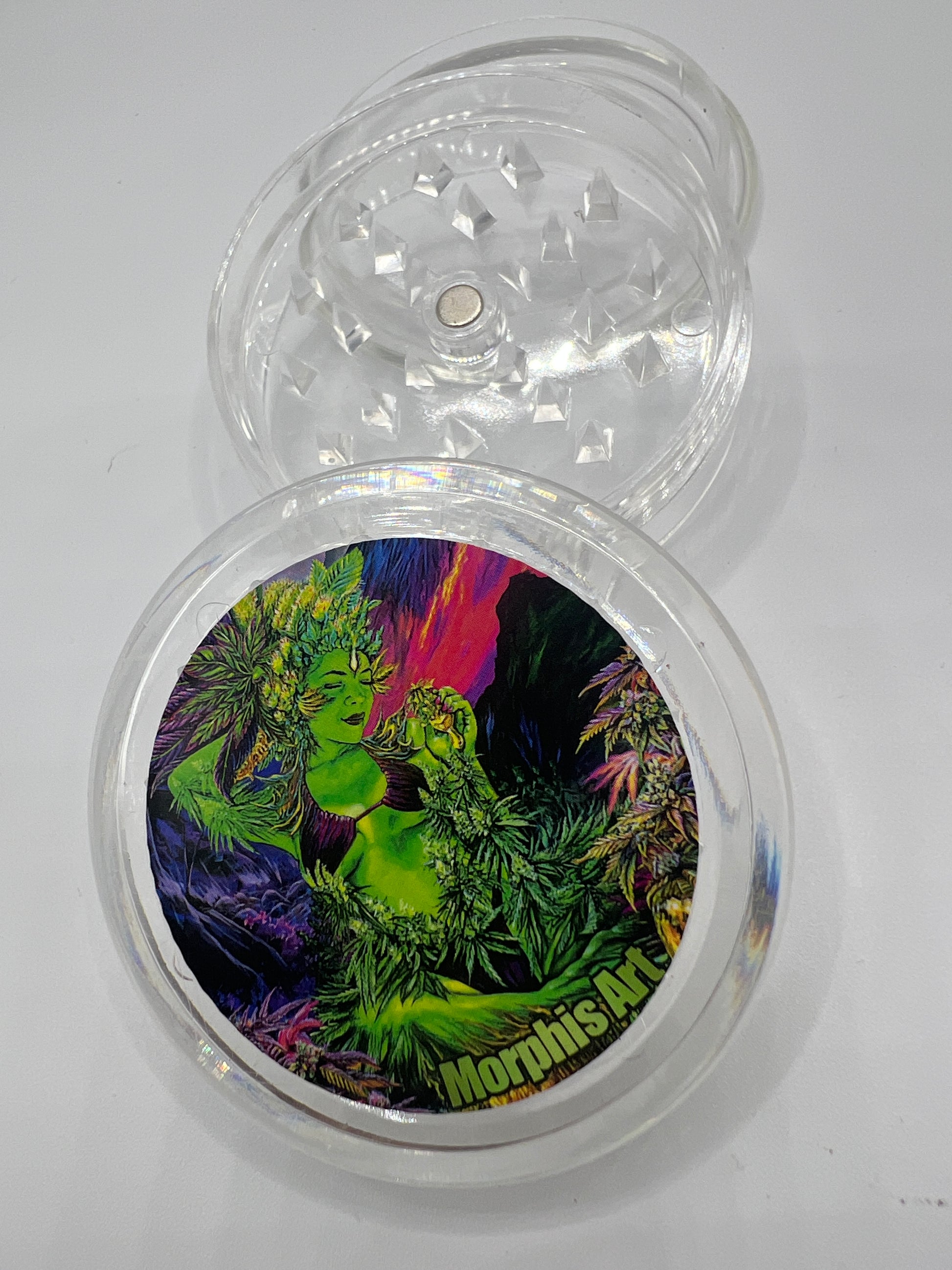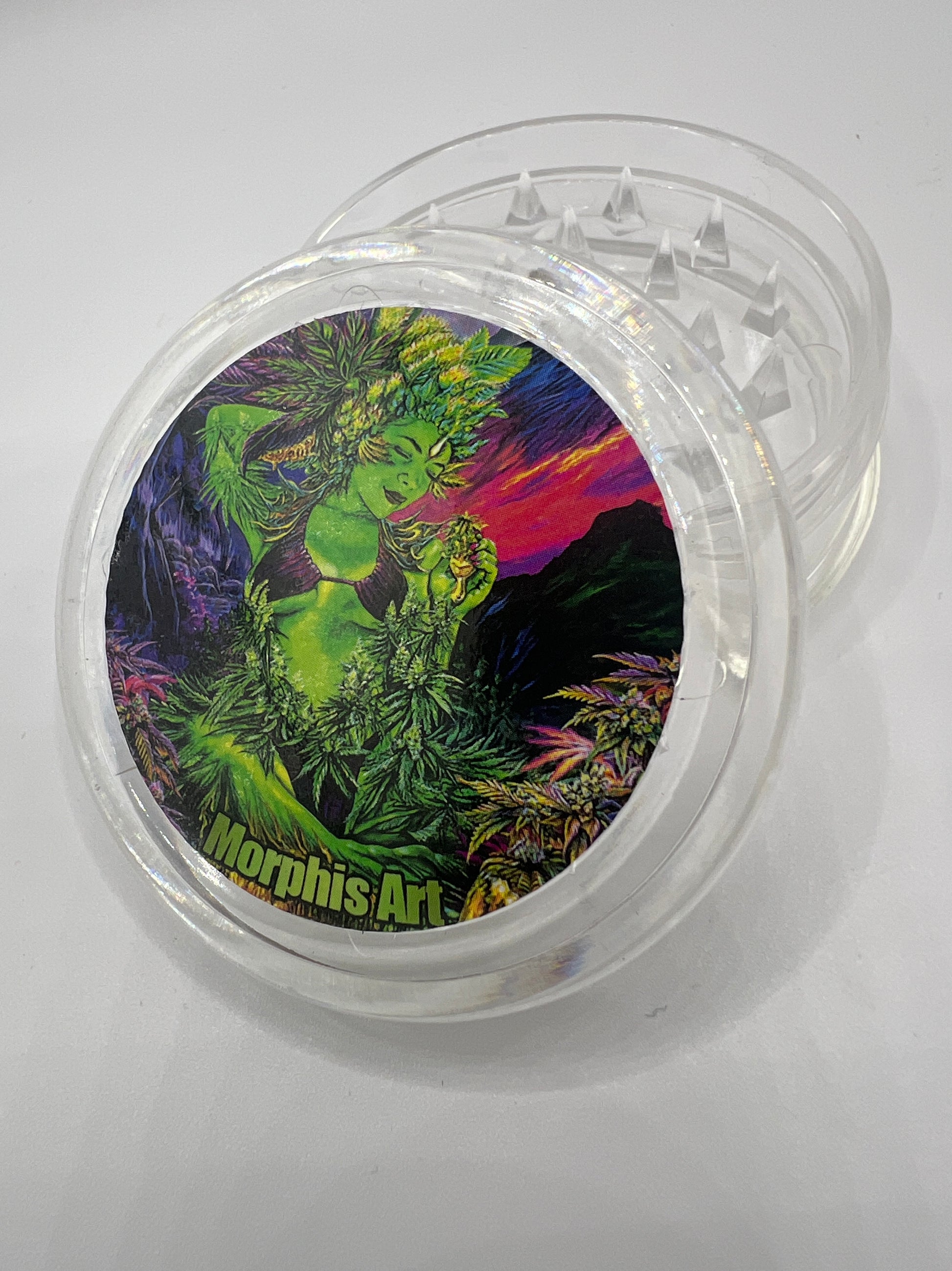 Grind in style with this custom-printed acrylic grinder, featuring vibrant Morphis Art on the lid and a convenient storage compartment on the bottom. Lightweight, portable, and functional, this grinder is built for both festival life and everyday sessions.