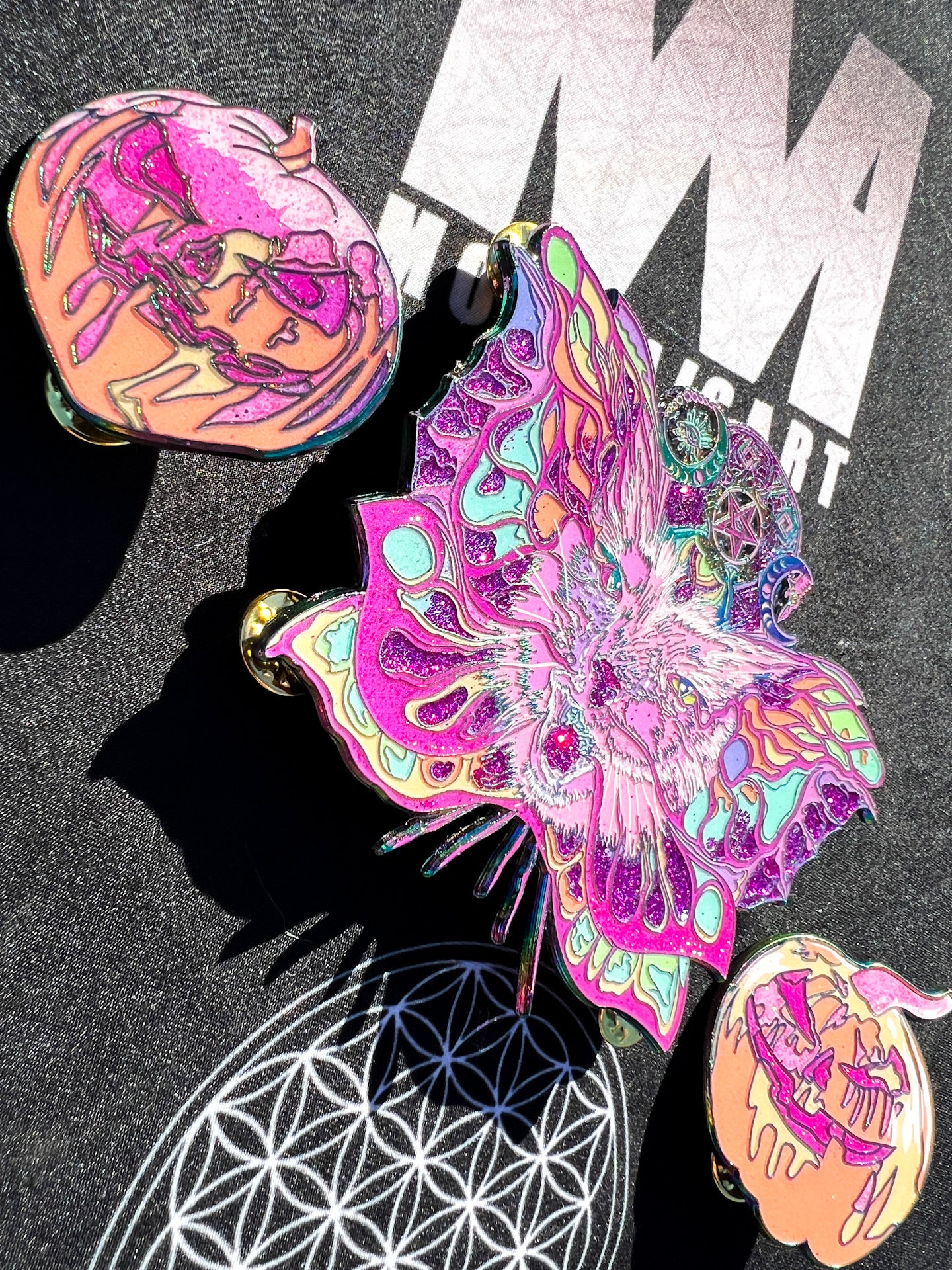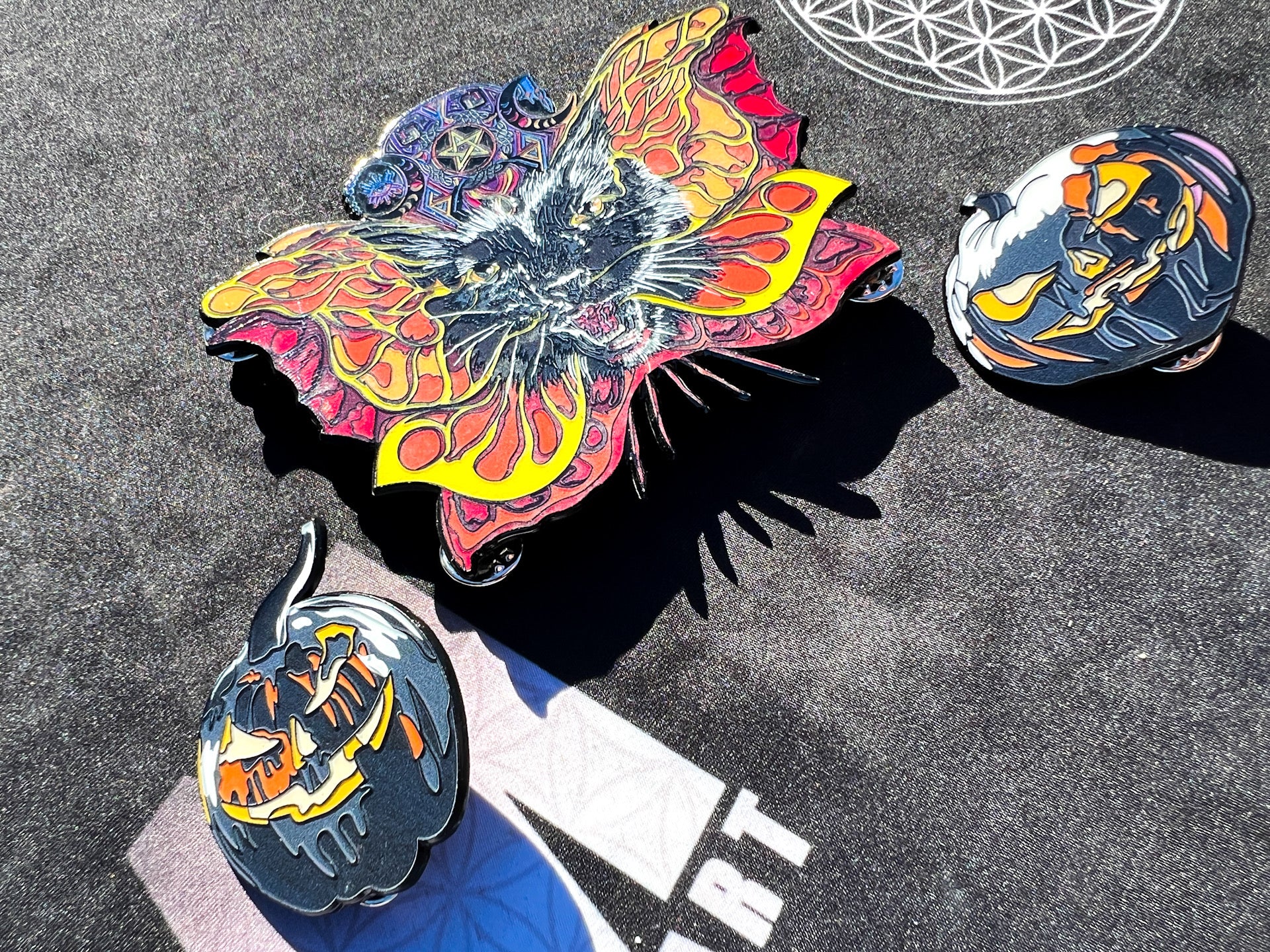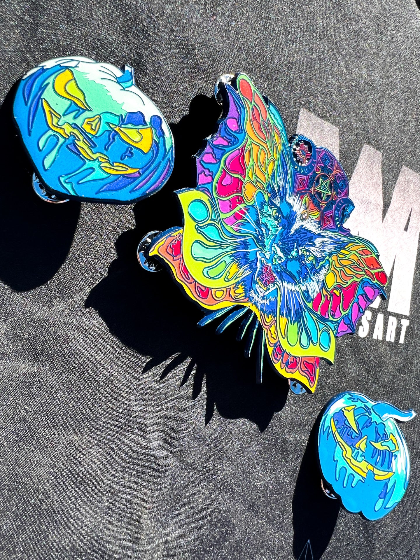 Presenting the Cat Butter Bat in all its glory—spreading feline vibes and bat wings for a truly one-of-a-kind pin. If you’ve ever wondered what happens when a cat meets a bat meets a buttery pumpkin… well, you’ve got your answer! These limited edition lapel pins are purr-fect for any collector or lover of the absurd. Each variant features stunning attention to detail and comes with two charming pumpkin pins to complete the Halloween-themed set. You can also grab the Cat Butter Bat pin solo if you’re just here for the weird, whimsical, and wonderful.