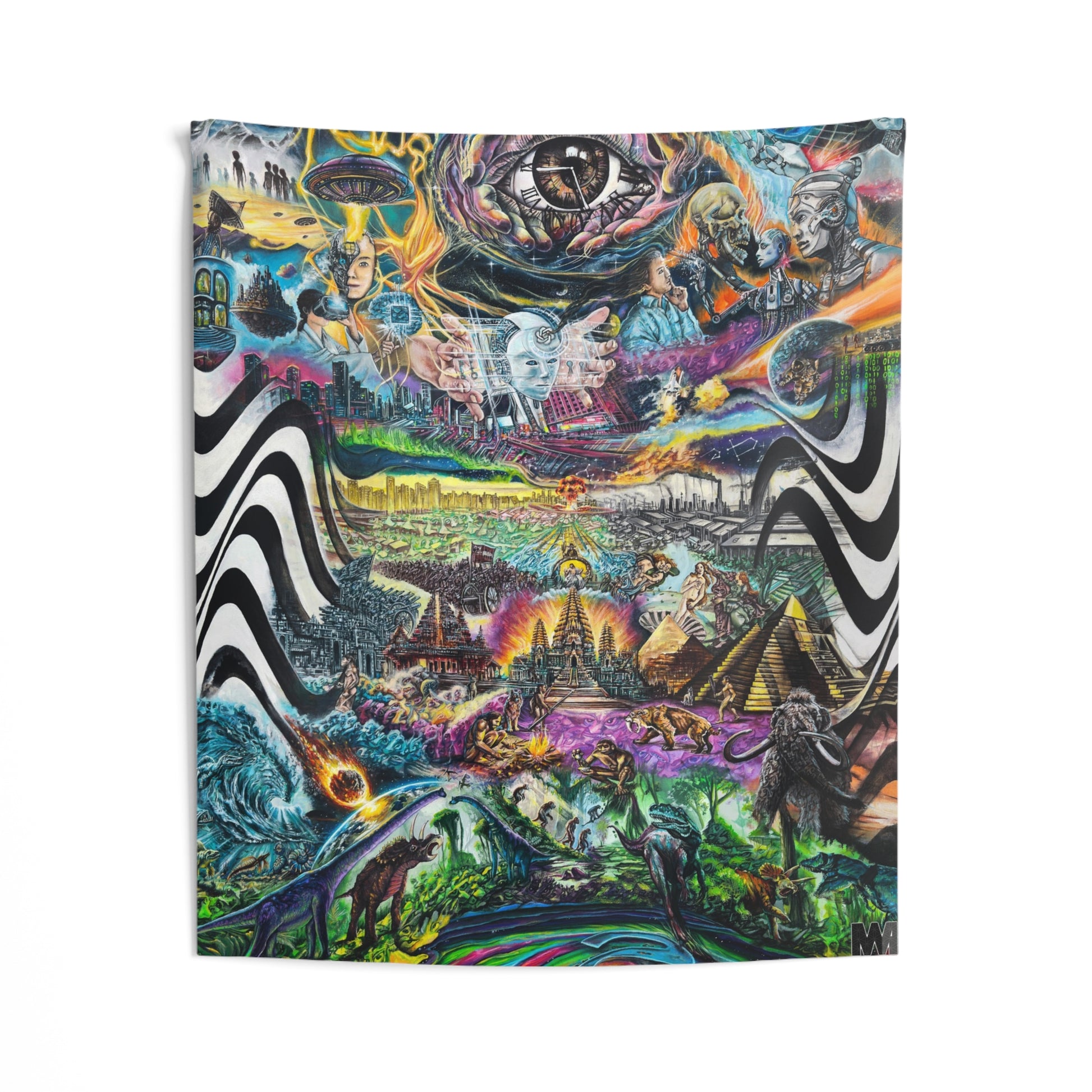 Turn your wall into a wormhole. The EVOL Tapestry is not just home decor—it’s a full-spectrum psychedelic download straight from the multiverse. Spanning 2.5 years of paint-slinging, festival dust, and metaphysical meltdowns, “EVOL: Earth’s Vast Origin of Life” is now available as a vibrant, high-resolution wall tapestry that fuses visual chaos with precision print.