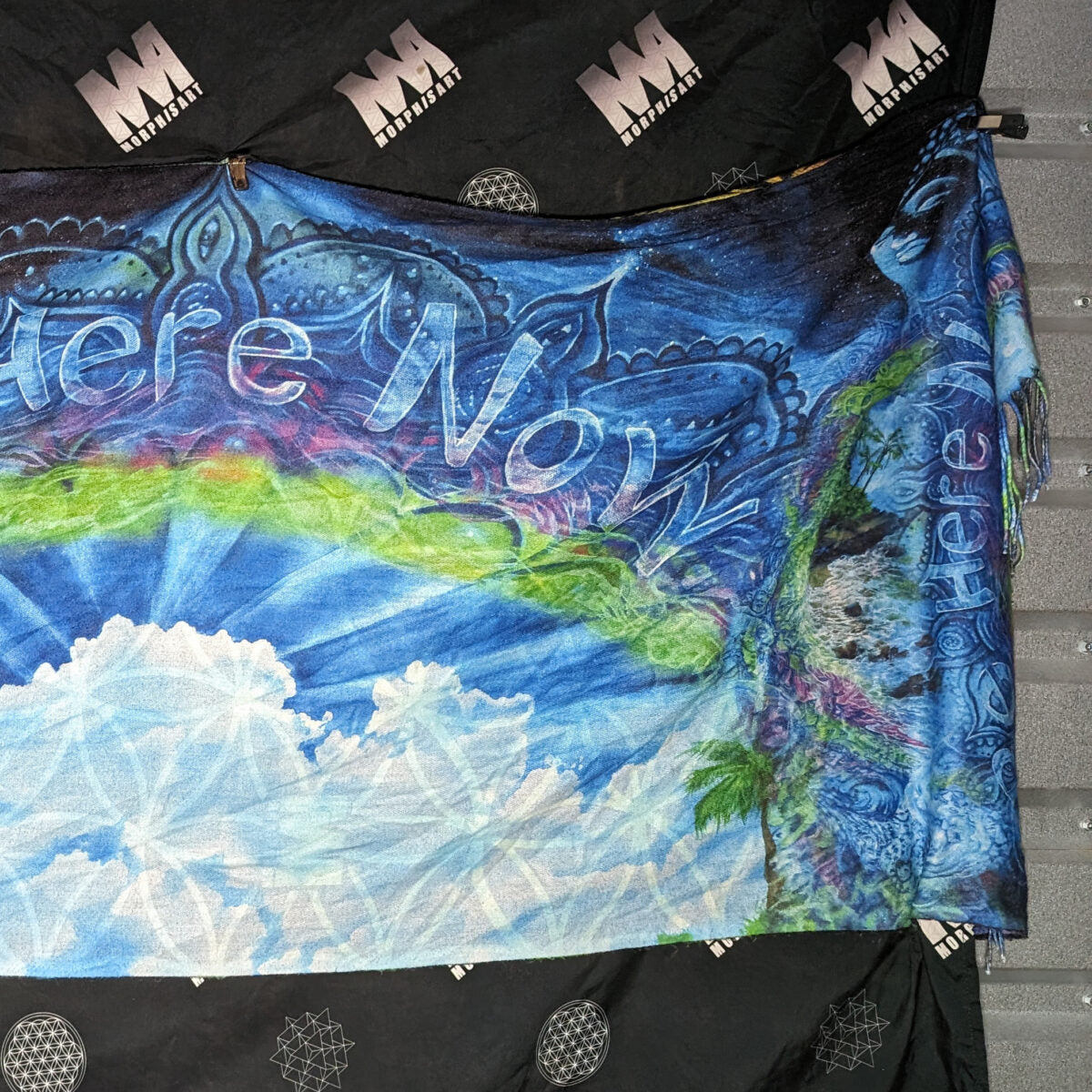 - Lebendige und bedeutungsvolle Bilder : Jede Farbe und jedes Detail wird mit Sorgfalt wiedergegeben, um sicherzustellen, dass die Pashmina nicht nur optisch ansprechend, sondern auch reich an Symbolik ist. Der Sublimationsprozess fängt die Tiefe des „Be Here Now“-Konzepts ein und verwandelt die Pashmina in einen tragbaren Ausdruck spiritueller Kontemplation.