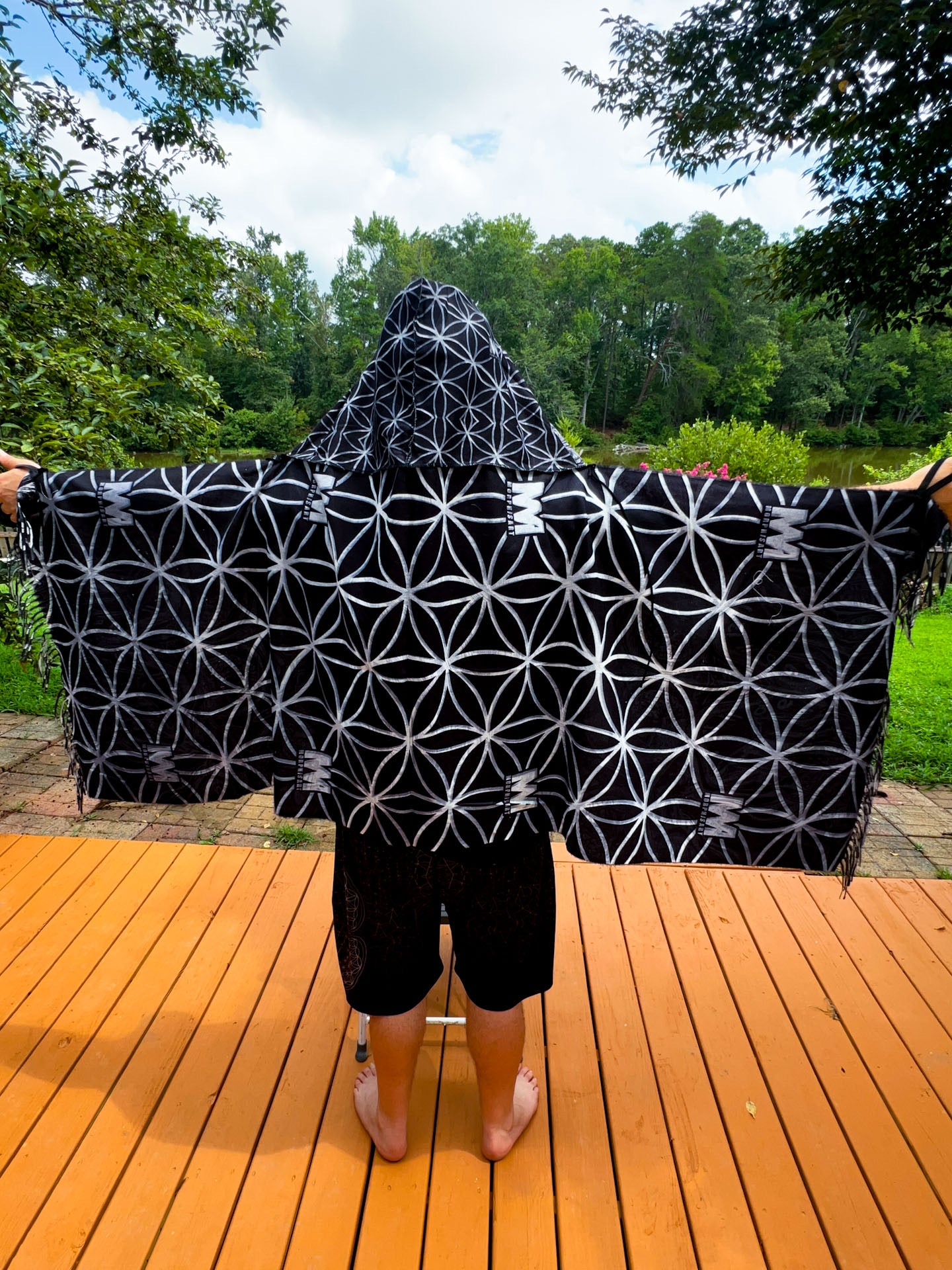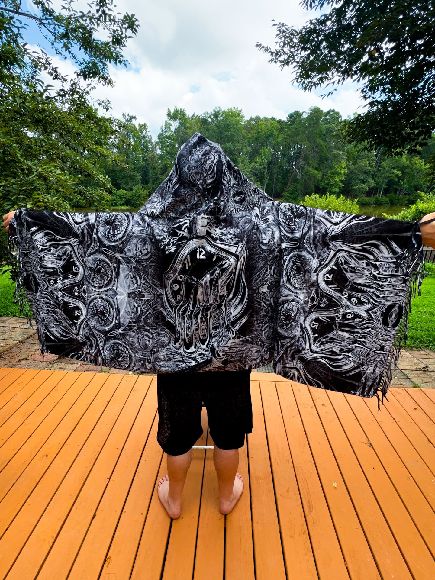 • Tie string and elastic thumb/wrist loops: NOW FEATURING A tie string around the base of the hood for you to tie it and hold it on also at the ends where the tassels are there loops for you to put your thumb or wrist so it’s easy to wear and covers your body like a shawl
