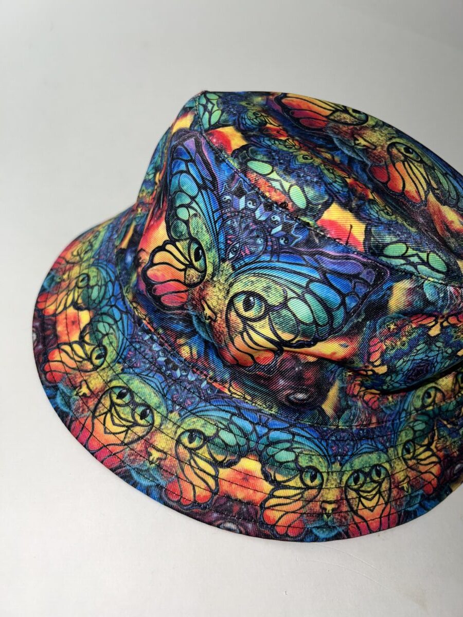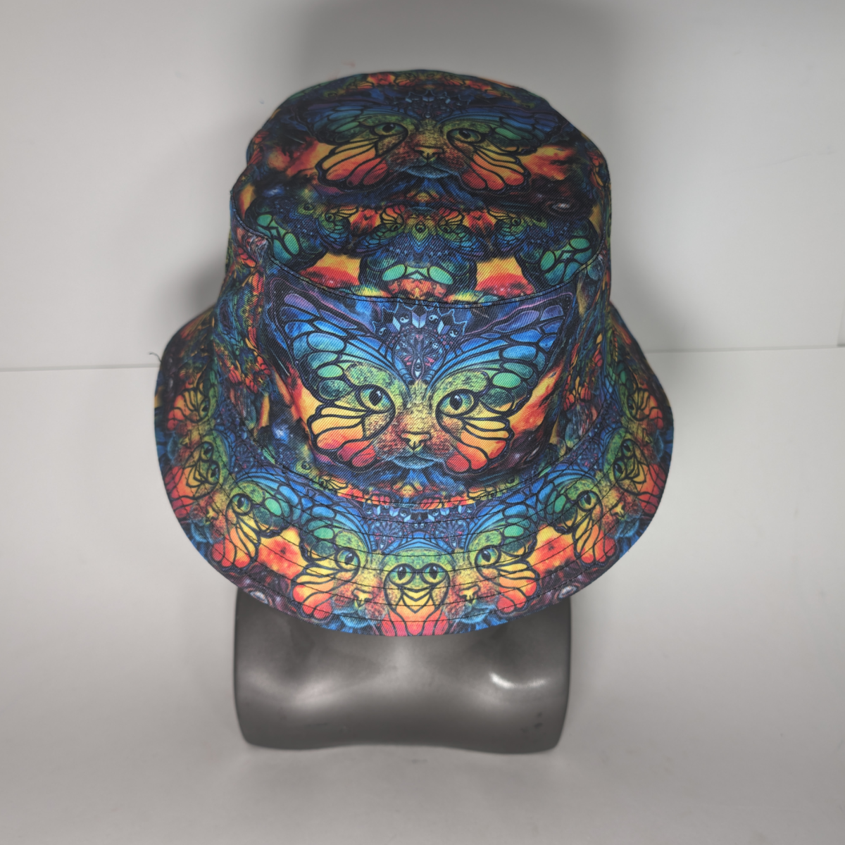Tauchen Sie ein in eine Welt, in der sich leuchtende Farben und skurrile Formen vereinen, mit dem Space Catterfly Bucket Hat in limitierter Auflage. Mit nur fünf Stück pro Größe ist dieser Hut der Inbegriff künstlerischer Exklusivität und zeigt das ikonische „Space Catterfly“-Design von Christopher Morphis.