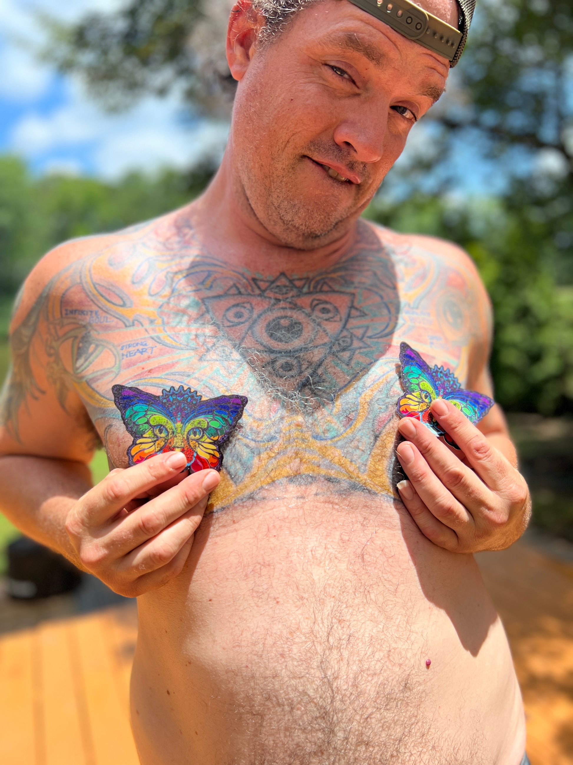 Blast off into the weirdest part of the universe—your own chest—with our Space Catterfly Pasties!