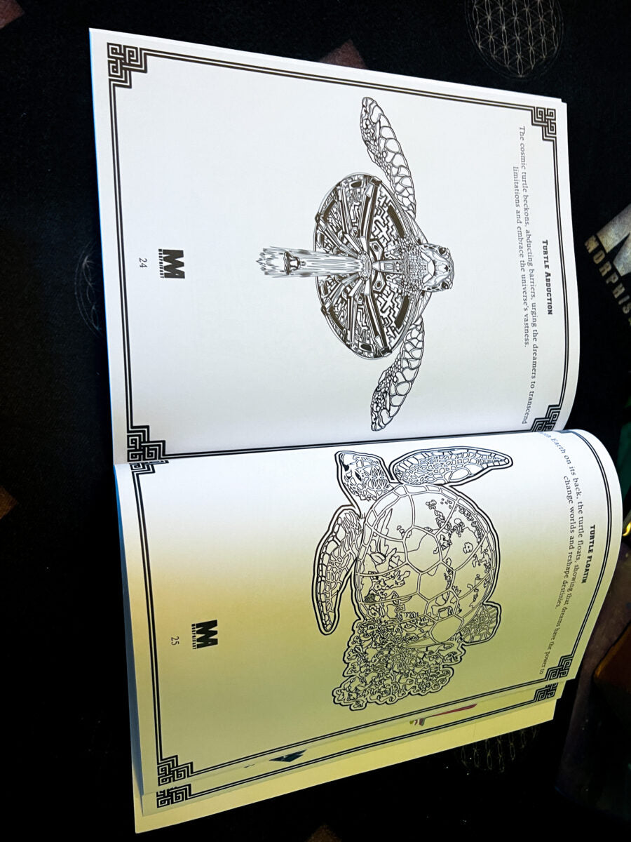Betreten Sie „The Dreamer's Odyssey“, ein Malbuch für Erwachsene, das eine Reise durch die abstrakten und bejahenden Welten von Morphis Art verspricht. Dies ist nicht nur ein Malbuch – es ist ein Gefäß für Achtsamkeit und ein Beweis für die Kraft Ihrer Vorstellungskraft. Mit 33 einzigartigen Malseiten plus einer Bonus-Stickerseite ist „The Dreamer's Odyssey“ eine Fundgrube für alle, die ein kreatives Malbuch suchen, das abstrakte Kunst mit bezaubernden Fantasy-Elementen verbindet. Von der skurrilen „Kitty Fly“ bis zur verspielten Hommage in „SSPU Mario & Luigi“ ist jede Seite eine Feier des Surrealen und Erhabenen. Erkunden Sie die interstellaren Wunder mit „Turtle Abduction“ oder erwecken Sie Ihre innere Kraft mit „The Force Is You“. Jede Illustration in diesem Fantasy-Malbuch ist eine offene Einladung, Ihre Buntstifte zu schwingen und den komplizierten Designs, die auf Ihre einzigartigen Farbtöne und Schattierungen warten, eine persönliche Note zu verleihen. Es ist ein Malbuch mit Affirmationen, das nicht nur die Seele beruhigt, sondern auch den Geist stärkt und Sie dazu ermutigt, sich durch Affirmationen zu malen, die aufheitern und inspirieren. Kombinieren Sie Ihre Malreise mit dem perfekten Accessoire – Buntstiften von Morphis Art. Dies sind nicht nur Stifte; sie sind Ihre Werkzeuge, um die Essenz von „The Dreamer’s Odyssey“ einzufangen, indem Sie leuchtende Farben auftragen, die über jede Seite tanzen und Schwarz-Weiß-Skizzen in ein Spektrum von Träumen verwandeln. „The Dreamer’s Odyssey“ von Morphis Art ist mehr als nur ein abstraktes Malbuch – es ist ein Begleiter für diejenigen, die an die Schönheit ihrer Träume glauben. Tauchen Sie ein in dieses kreative Malbuch und lassen Sie Ihrer Fantasie freien Lauf durch eine Galaxie aus Farben.