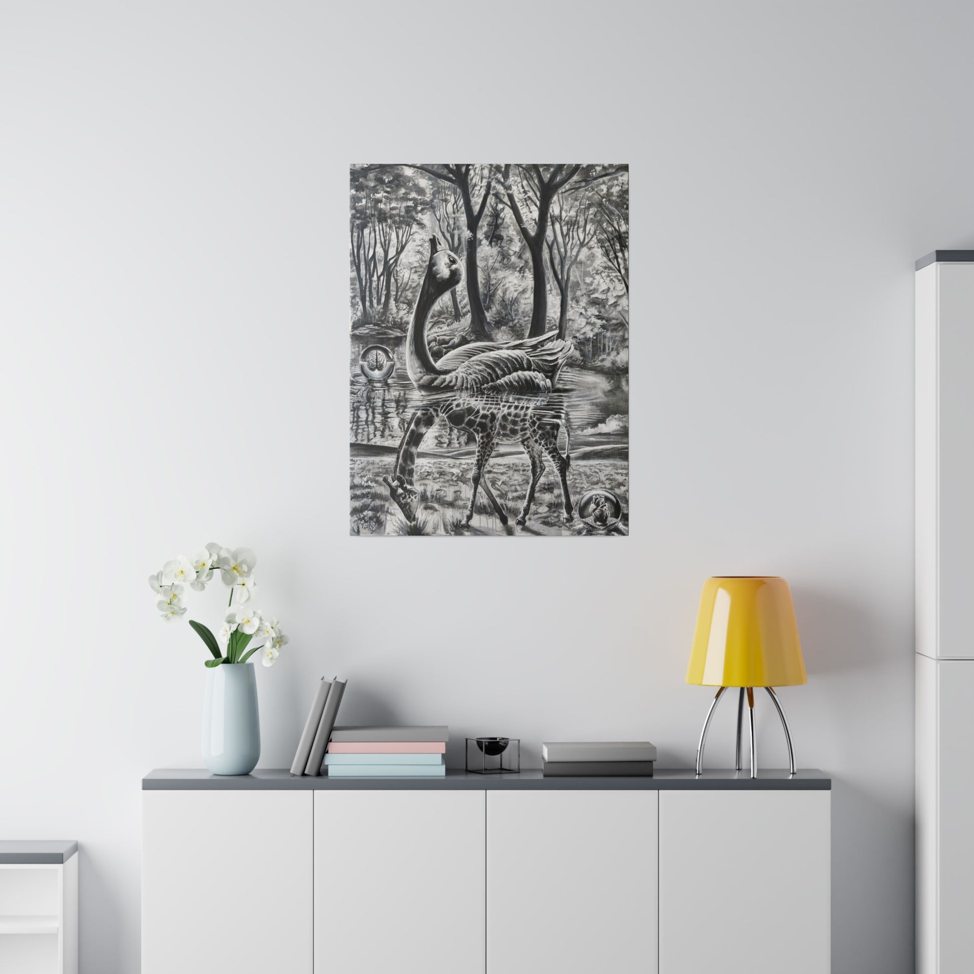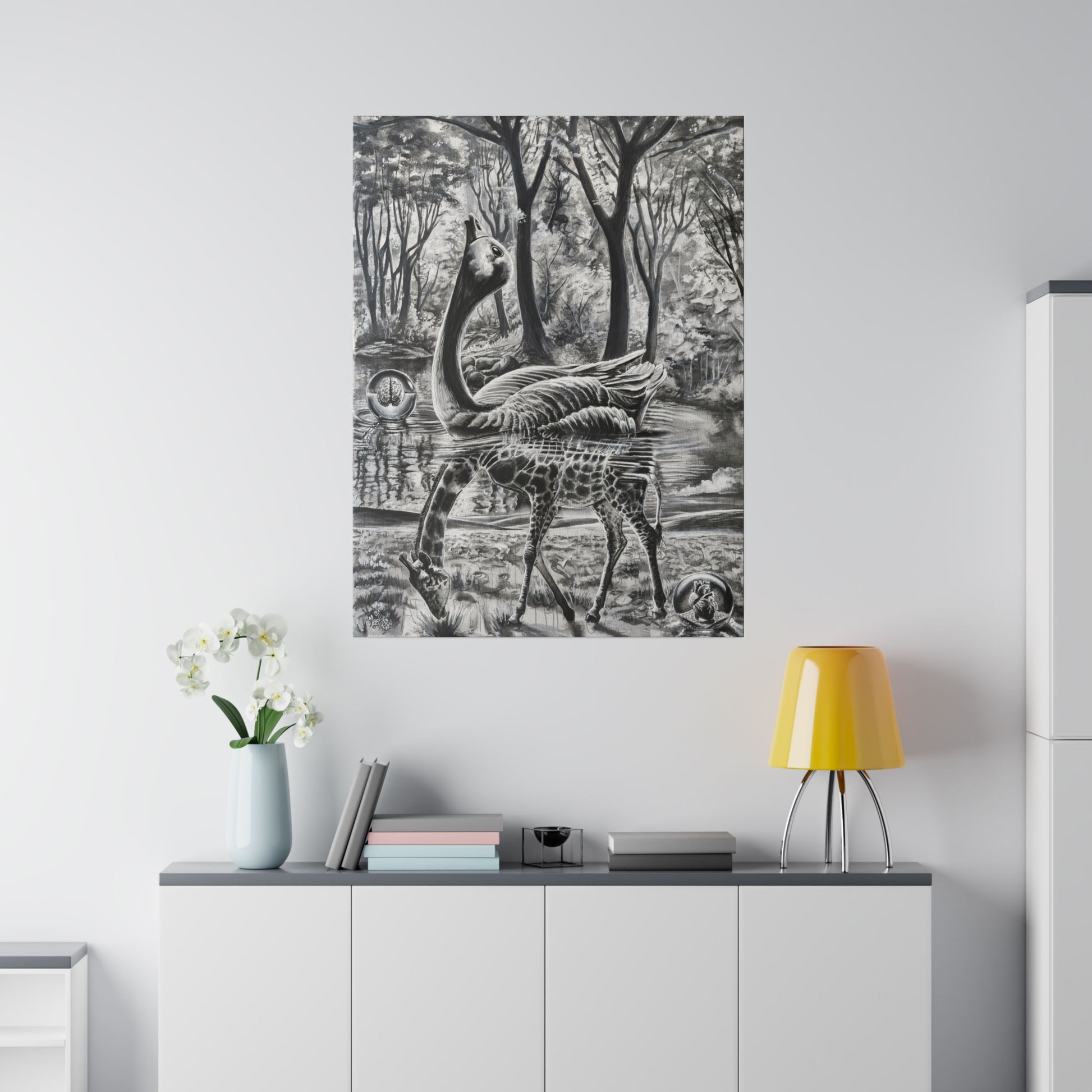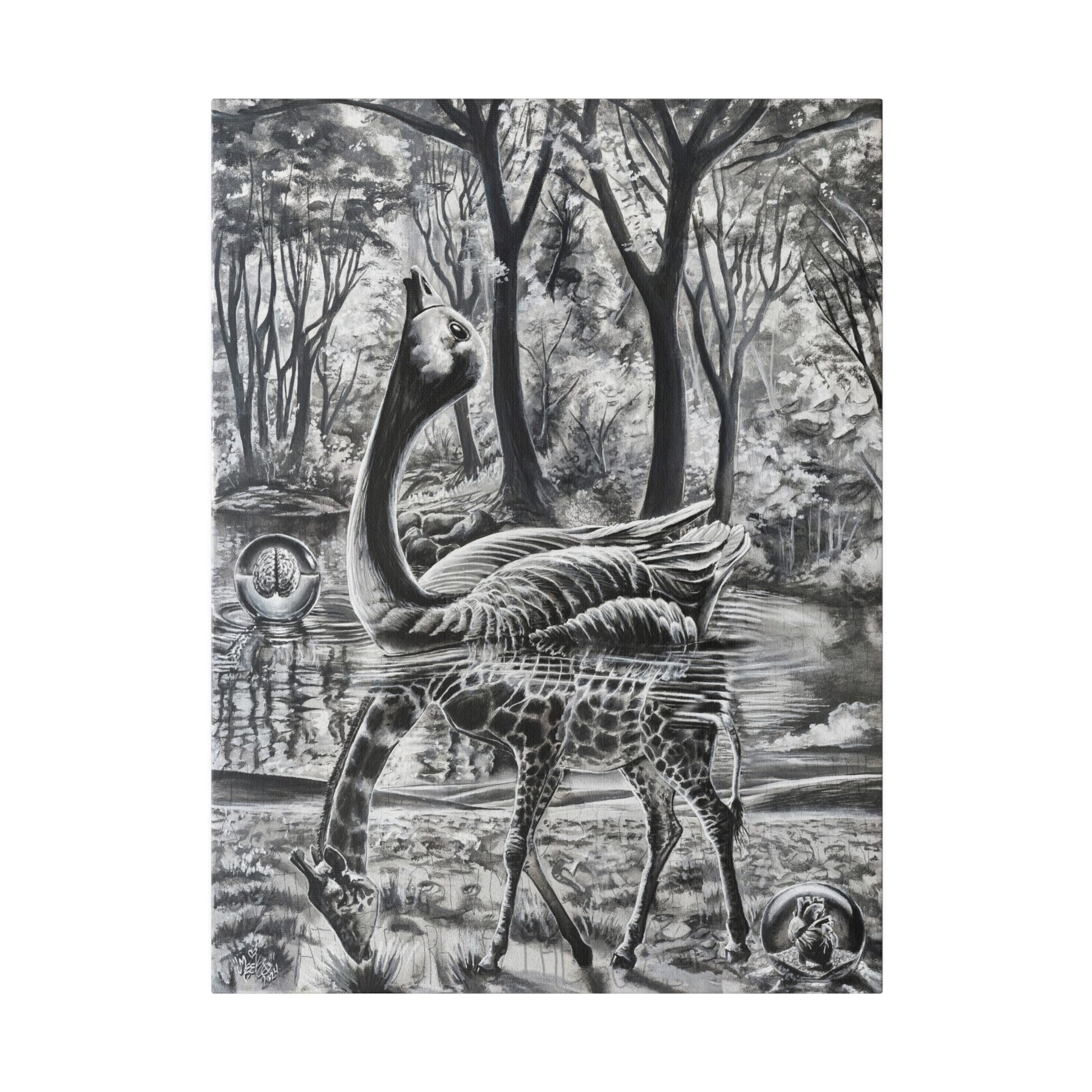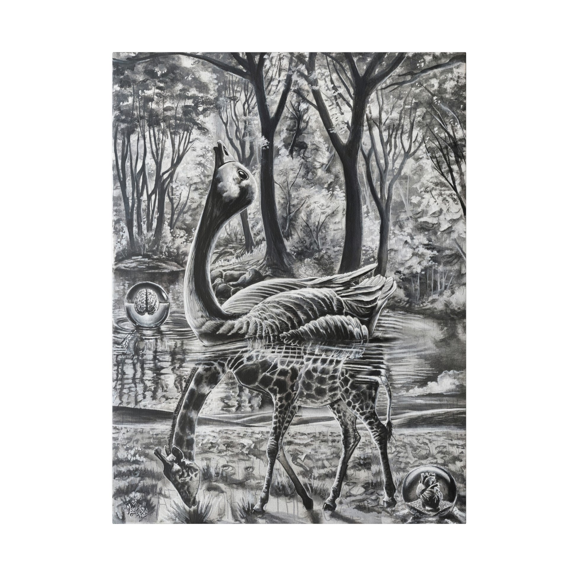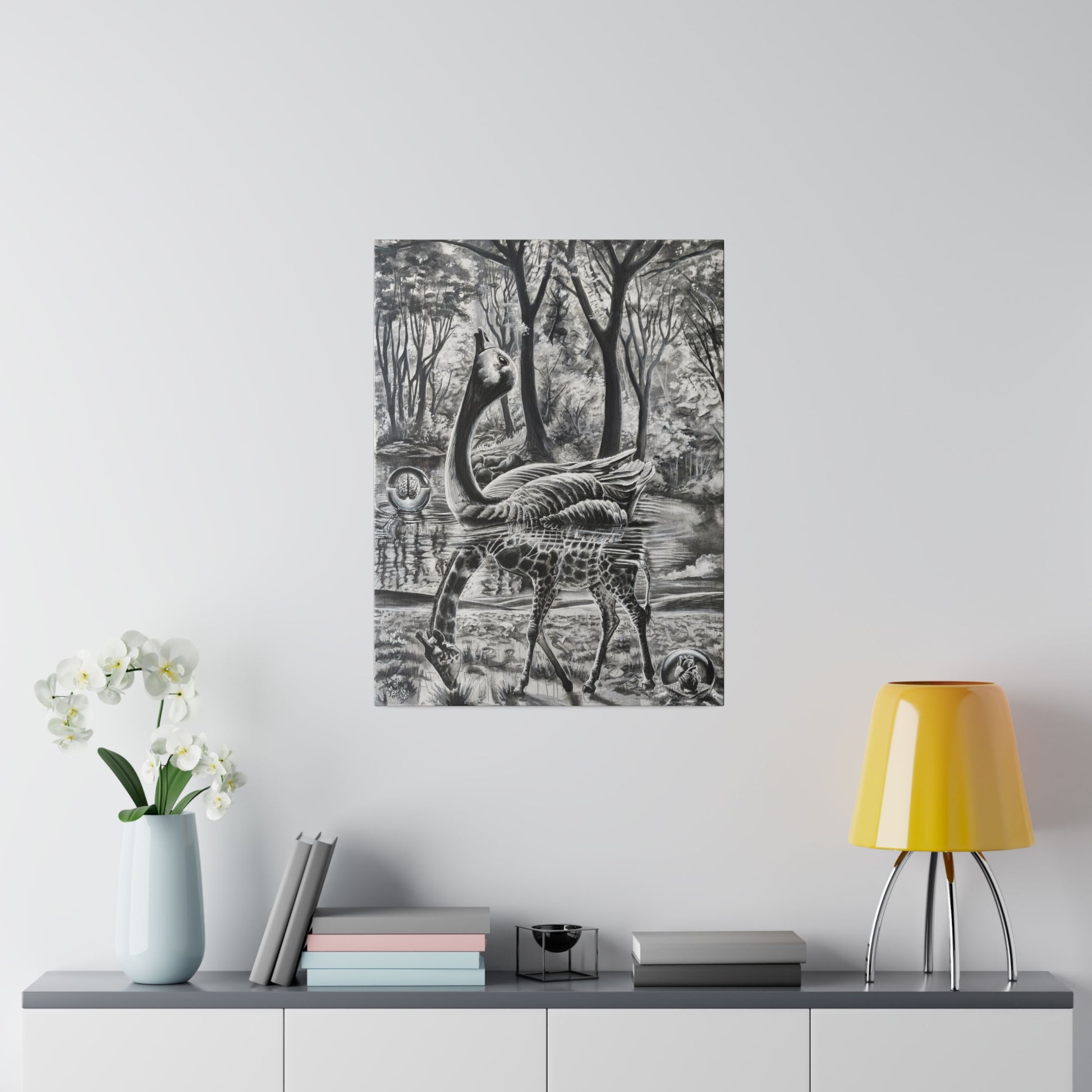 Crafted with a durable blend of premium cotton and polyester canvas (9.82 oz/yd², 333 g/m²), our prints boast a special proprietary coating that ensures vibrant colors endure. Each canvas is an eco-friendly choice, featuring frames made from responsibly sourced radiata pine from renewable forests. Our commitment to quality and sustainability means you can confidently hang your artwork, supported by soft rubber dots in the back corners for added stability.