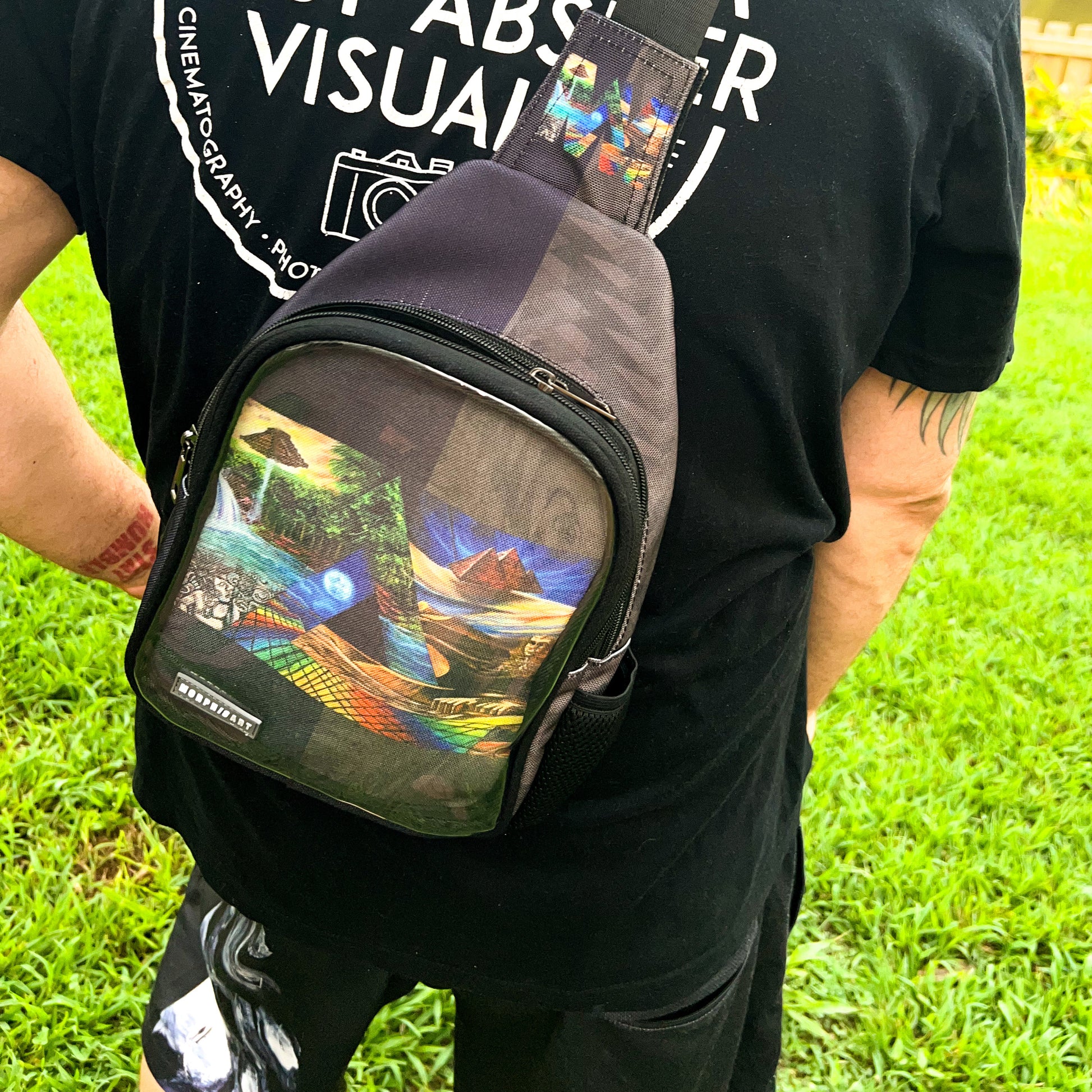 Experience the enigma of "Ancient Aliens" with our meticulously designed Cross Body Bag. Crafted from thick woven material and adorned with a vivid full-color sublimation print of the original painting, this bag is both a statement piece and a practical accessory.