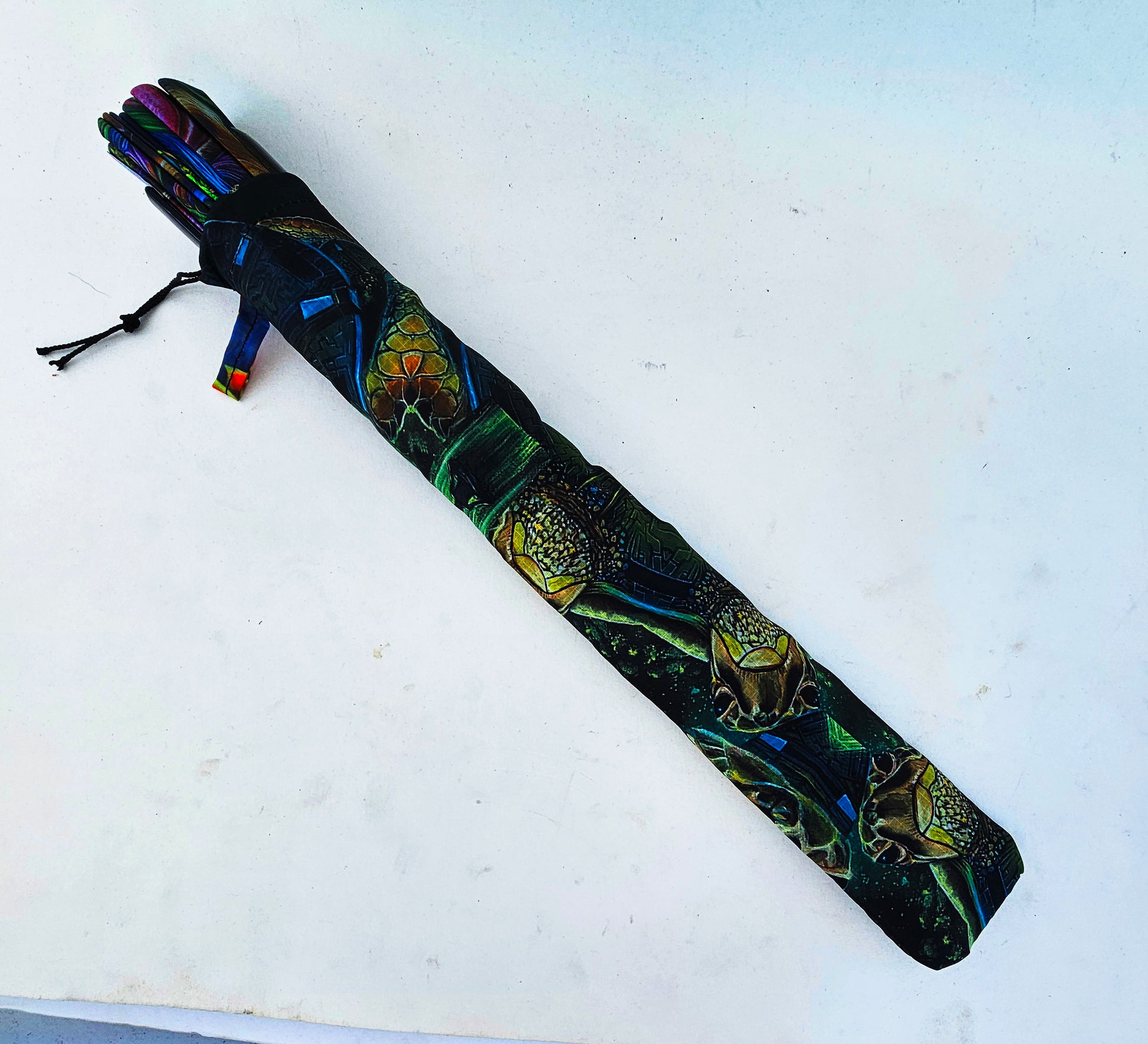 Introducing our Hand Fan Bags – where art meets functionality. Each bag is crafted from custom-designed fabric inspired by our original paintings and handmade in the United States by an independent seamstress. These bags offer both style and convenience, making them an essential accessory for festivals, events, or everyday use.