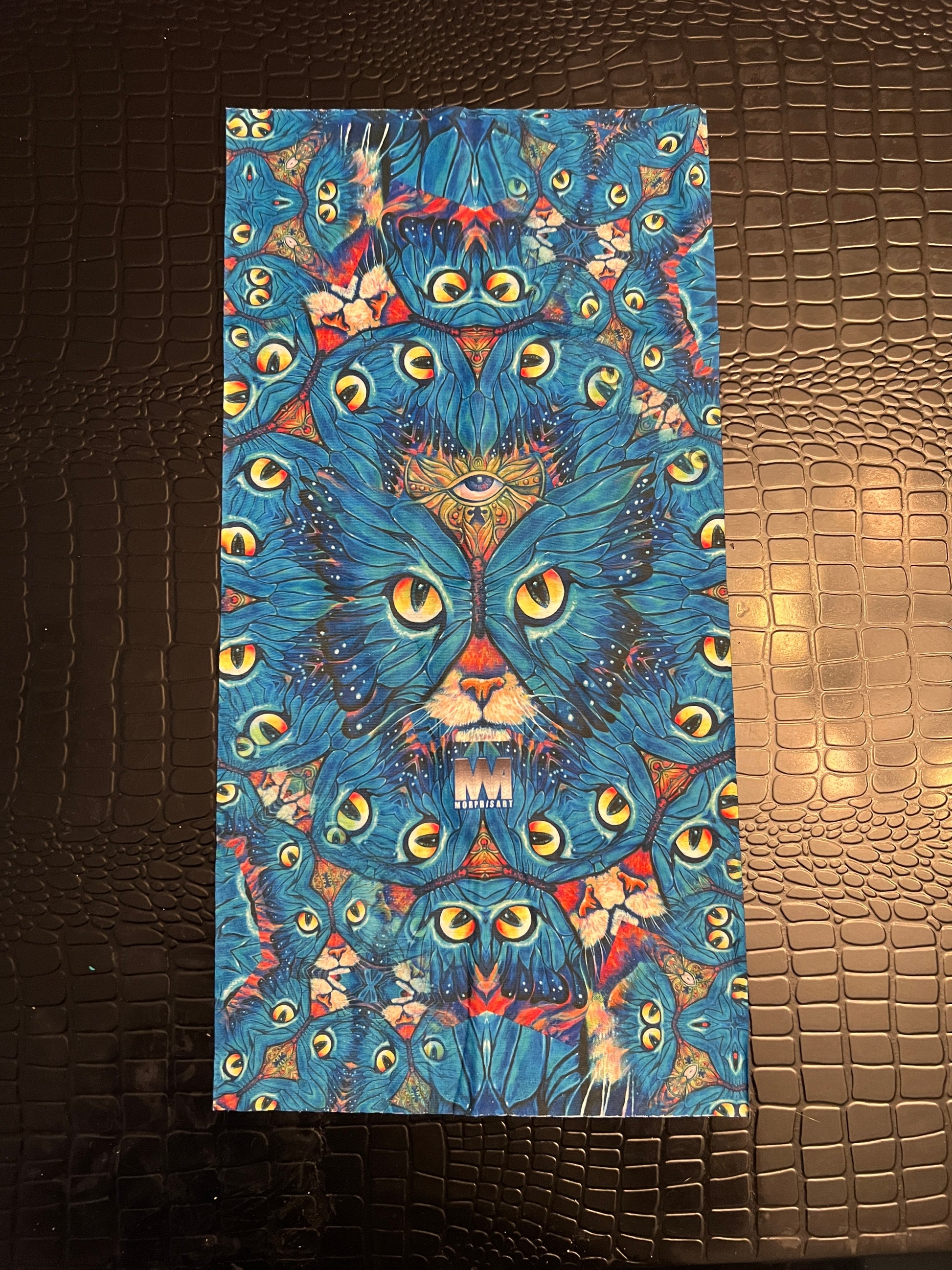 Step into comfort and style with our versatile face shields/neck gaiters, designed to offer protection while showcasing unique designs. Directly inspired by Christopher Morphis's captivating original painting, "KittyFly".