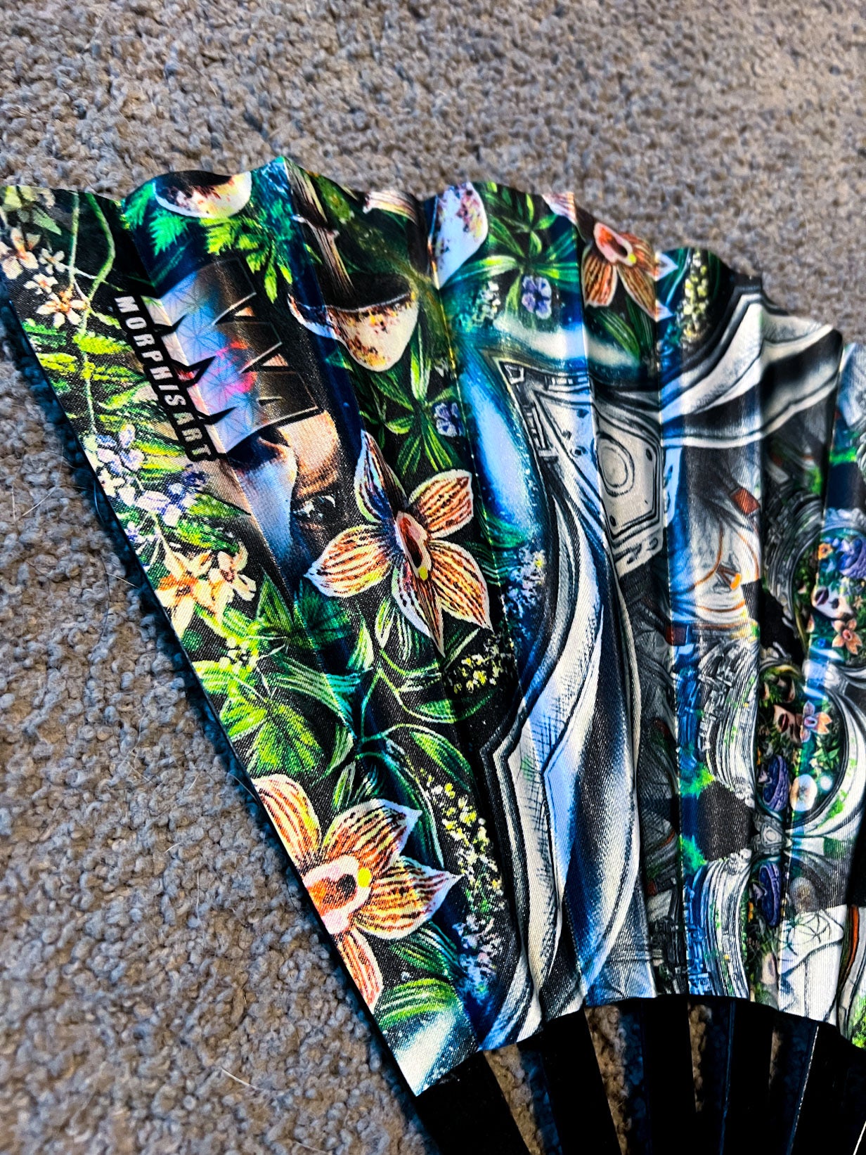 Stay cool and stylish with the Morphis Art hand fan, featuring the mesmerizing artwork of Christopher Morphis. This fan combines practicality with art, making it a perfect accessory for any occasion. Key Features: