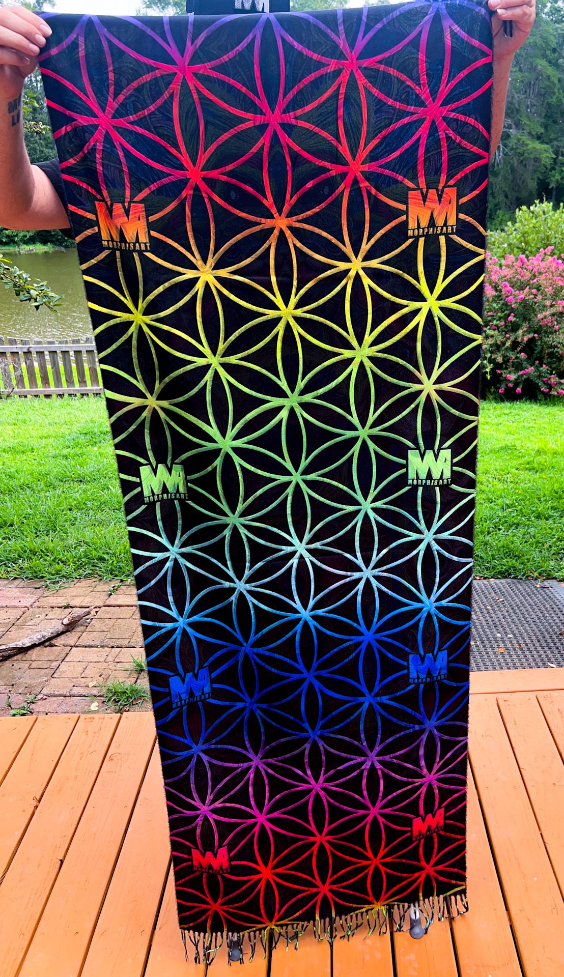 • High-Quality Sublimation Printing: Utilizing advanced sublimation printing techniques, both sides of this pashmina display vivid and intricate designs. This process ensures that the colors are rich and the imagery is clear, making every wrap a visually stunning experience.